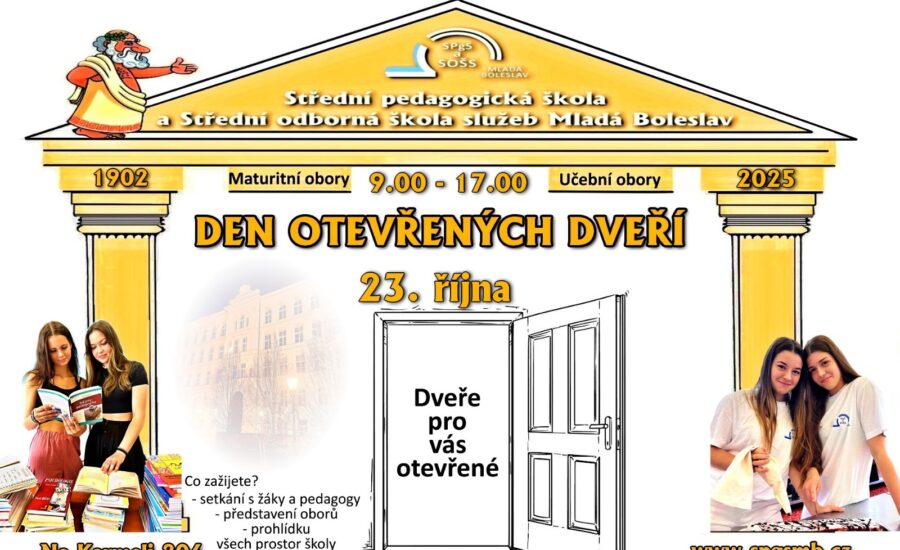 23. října můžete prohlédnout celou školu. Budete se moci zeptat na zkušenosti žáků. Otázky budou připraveni zodpovědět učitelé školy.