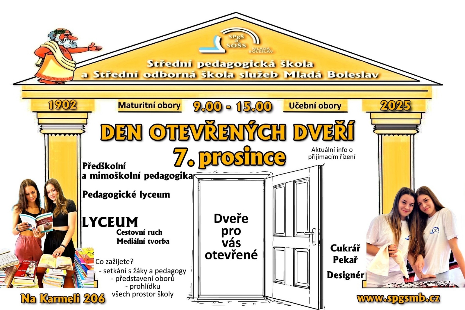 Zahájení školního roku 2025 Slavnostní zahájení školního roku prvních ročníků Na parkovišti mezi školou a kostelem Na Karmeli se sejdeme nejpozději v 7:45 hodin –